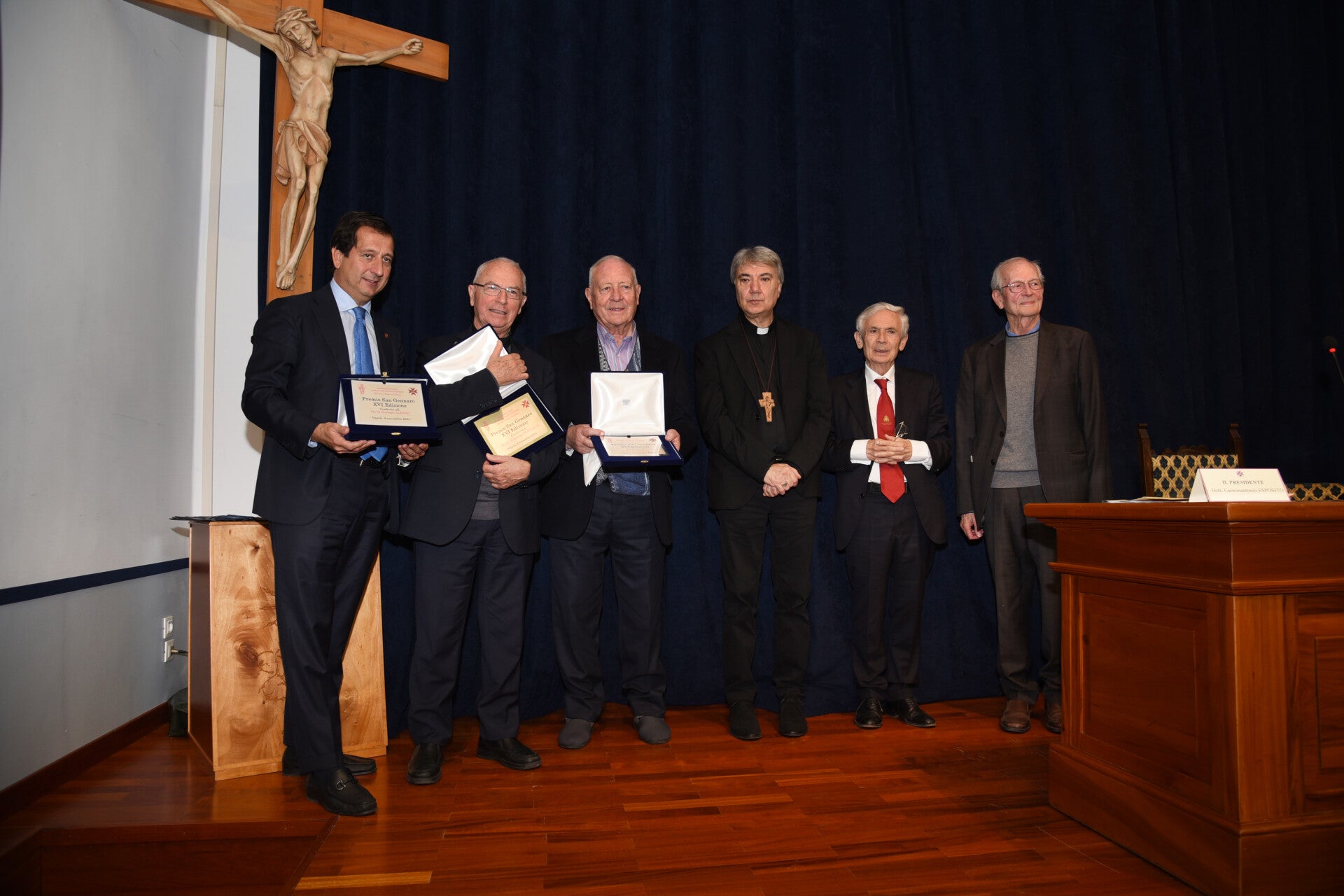 L’istituzione del Premio San Gennaro, l’idea che gli diede vita, può essere spiegata, semplicemente, come una illuminazione provocata dall’amore: verso il popolo napoletano, verso le sue antiche sofferenze e le tante difficoltà fra le quali ha vissuto e vive. Difficoltà e sofferenze alle quali bisognava ridare una speranza, fornire un esempio che restituisse alla città e ai suoi abitanti la dignità e la coscienza del suo potenziale, spesso inespresso. Amore verso il suo santo protettore che nei secoli è sempre intervenuto per sostenere la sua gente, per fargli scudo contro pestilenze e cataclismi di ogni genere. E’ questo, che nel suo piccolo, si è proposto di fare, fin dal suo esordio, il Premio San Gennaro. Per comprenderlo dobbiamo fare un passo indietro, capire le motivazioni che spinsero un gruppo di fedeli a riunirsi in una associazione che portasse il nome di San Gennaro, il santo Patrono di Napoli. La storia di questa associazione privata di fedeli prende la sua forma e la sua identità quasi definitiva nel 1983 quando il cardinale Corrado Ursi, arcivescovo di Napoli, le conferisce la denominazione di “Comitato Diocesano San Gennaro”. Nell’occasione il cardinale affidò la carica di presidente all’on. Gennaro Alfano, l’indimenticato presidente che ne resse le sorti per ben 22 anni. Diciassette anni dopo, nel 2000, il cardinale Michele Giordano riconobbe al Comitato il compito di “Guardia d’Onore alla Cripta di San Gennaro”. Fin dalla sua costitituzione la finalità del sodalizio fu una sola: quella di diffondere la devozione del santo martire attraverso una serie di cerimonie sia religiose che laiche. Una delle principali manifestazioni civili, se non la più importante, fu promossa, con cadenza annuale, nel 2006, il Premio San Gennaro. L’ultima edizione in ordine di tempo, la XVII (sarebbero state 20 se la pandemia non ne avesse ostacolato la continuità), è stata celebrata sabato 22 novembre u.s, presso la sala delle conferenze del Seminario Arcivescovile “Alessio Ascalesi”, come ormai avviene da lunga e consolidata tradizione. Negli anni la risonanza, anche mediatica, di questo Premio ha assunto una dimensione che ha superato l’ambito sia cittadino che regionale proprio perché si è recepito il messaggio di speranza che si accompagnava ai grandi esempi dei suoi figli migliori. Un messaggio tanto più gradito dal momento che si traduceva in una testimonianza sincera di valori cristiani. Detto con parole molto chiare il Premio San Gennaro è un riconoscimento che il Comitato Diocesano, con l’alto patrocinio della Chiesa di Napoli, assegna ogni anno a tre illustri personalità che onorano con il loro lavoro, nel campo culturale, artistico, scientifico, imprenditoriale, Napoli e la regione Campania in Italia e nel mondo. Un riconoscimento che negli anni ha assunto sempre di più un valore simbolico, traducendosi in una importante occasione di crescita civile e sociale. Una crescita non concepita come un valore astratto, ma declinata attraverso gli esempi di lavoro operoso e solidale di personalità che vengono premiate in due modi: con artistici busti di San Gennaro realizzati dal noto scultore Lello Esposito e con le insegne del Comitato Diocesano. Le personalità prescelte quest’anno per il Premio incarnano perfettamente questi modelli: il prof. Paolo Antonio Ascierto, oncologo di fama internazionale; la prof.ssa Eugenia Carfora, dirigente scolastica di altissimo livello; il duca Riccardo Carafa d’Andria, vicepresidente della Deputazione della Real Cappella del Tesoro di San Gennaro, con un passato sportivo e giornalistico non comune. E’ a questi illustri personaggi e al pubblico presente in sala, che il presidente del Comitato Diocesano, il dottor Carminantonio Esposito, ha indirizzato i suoi saluti prendendo la parola. Nel suo articolato discorso il dottor Esposito ha parlato delle finalità dell’Associazione, ha ricordato la figura del santo patrono e le motivazioni che lo condussero al martirio. Un esempio, quello di San Gennaro, che il presidente ha collegato ai valori dell’amicizia, della libertà, del dovere, che si ritrovano anche nel nostro ordinamento costituzionale. Al suo intervento ha fatto seguito il suggestivo momento della premiazione. Il conduttore. Mario Giannattasio, ha letto le note biografiche dei tre premiandi i quali, saliti sul palco, hanno ricevuto dalle mani del cardinale la statuetta del busto di San Gennaro. Sono state poi consegnate loro le insegne del Comitato Diocesano: la fascia col logo dal Pres. Esposito e la medaglia crociata da Mons. Adolfo Russo, Assistente Spirituale del sodalizio. Insegne che hanno fatto di loro dei confratelli dell’Associazione sangennariana. Terminata la cerimonia di premiazione, invitato dal conduttore, ha preso la parola Sua Eminenza, il cardinale Domenico Battaglia. Nel suo lungo e meraviglioso discorso, che ha emozionato grandemente il pubblico presente, il presule ha parlato della virtù teologale della speranza, declinandola nelle sue varie forme. L’uditorio ha salutato la conclusione delle sue spirituali riflessioni con un lunghissimo e commosso applauso. L’intervento di Sua Eminenza ha concluso degnamente la XVII edizione di questo importante progetto. Al suo termine gli ospiti sono stati invitati ad avvicinarsi ai tavoli del buffet imbandito in una sala attigua a quella delle conferenze.
